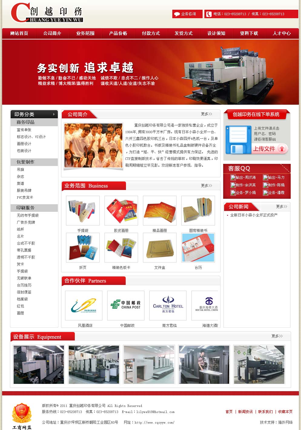 重庆创越印务有限公司是一家独资私营企业,成立于1994年,拥有3000平方米厂房。现有对开海德堡、六开三鑫四色胶印机,日本小森四开4色机,硬件设备齐全,为打造创越“短、平、快”经营模式提供有力保证。 先进的CTP直接制版技术,省去了传统的菲林,印刷效果逼真,印刷周期缩短立竿见影。高中低档礼品盒、各种笔记本 及不干胶。