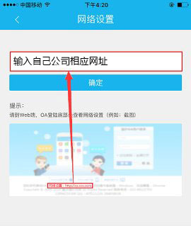( 3 )网络设置 : 必须匹配公司 oa 网址,才能正常登录 app