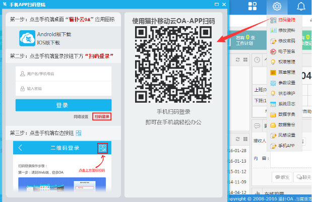 为了方便用户登录时,去除配置网址的错误输入 ,可登陆 web 端扫描进行登陆。