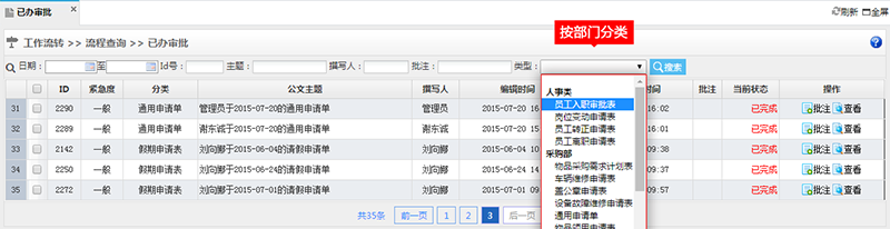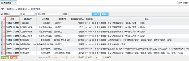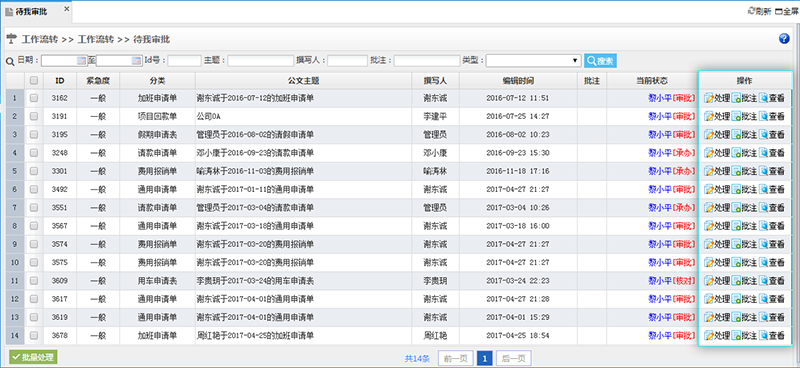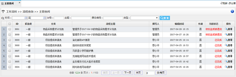 被授权的员工查看公司所有流程,对其进行相关的操作。