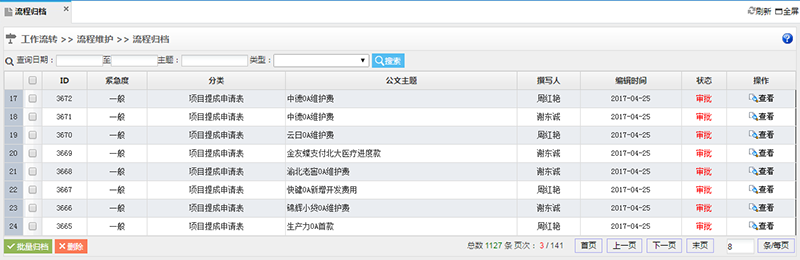 流程中最后一步为存档的,会记录在此方便以后查看。