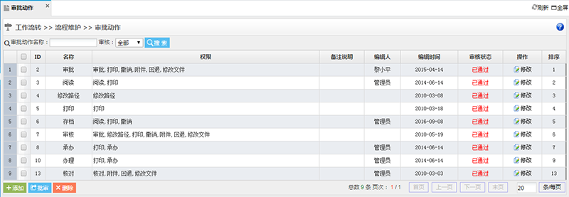 需要用户审批的文件,系统会自动整理到此模块,用户可以对文件进行审批操作。
