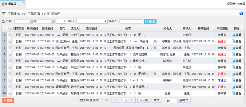 提交审批的工作报告,系统会自动把报告信息同步到“我的汇报”、审批人的“汇报审批”、知会人的“知会我的”功能模块里。