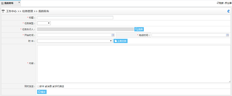 当需要发布一个任务的时候,在“我的发布”功能模块选着添加就可以新增一条任务