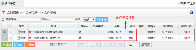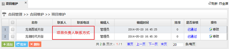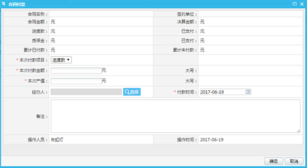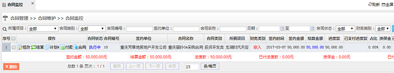 监控每个合同项目的进行情况,并可以对合同进行修改、结算、付款等操作。