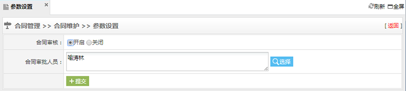 参数设置可以设置合同审批功能和同时设置合同审批人员。