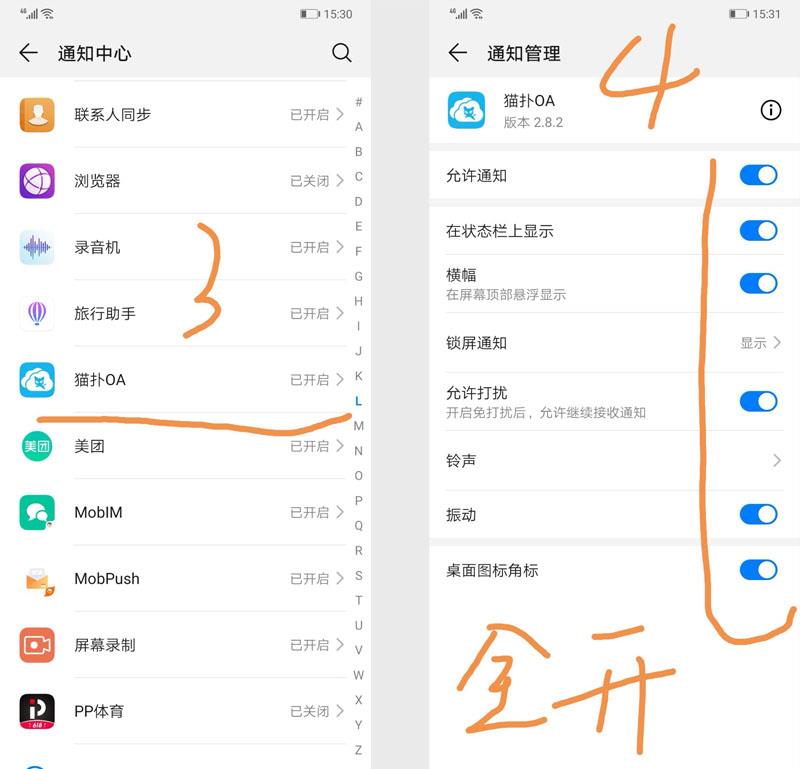 OA-手机开启开启推送通知设置使用个推