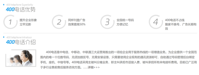 400电话拥有彩铃,导航,转接、电话会议,虚拟总机等数十项功能。