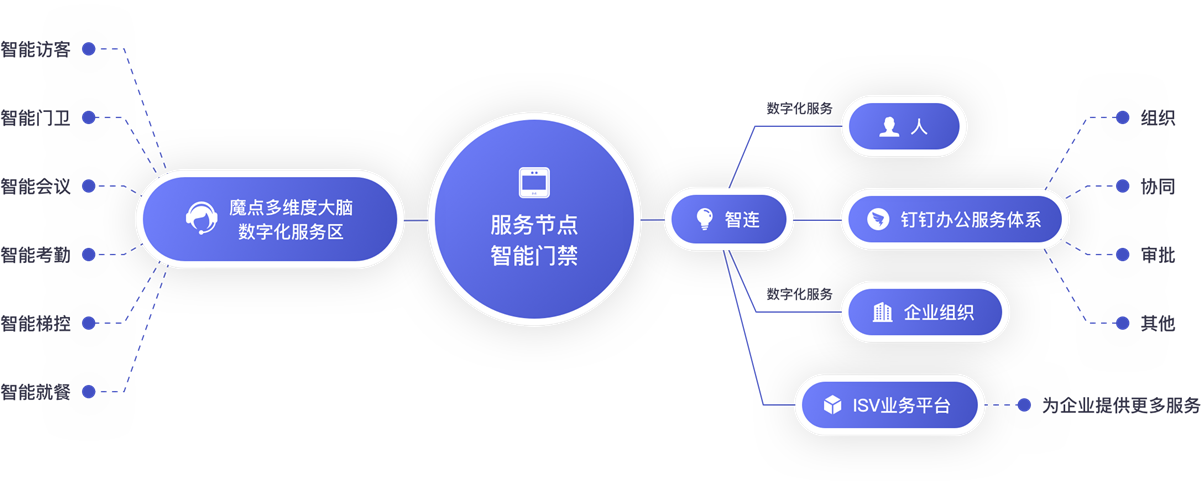 智能通行以AI、物联网、人脸识别为核心,深度集成钉钉生态、MO小智、智能体,实现毫秒级无感通行、动态权限秒级生效及多区域分级管控,精准应对人员高频流动、跨场景协同等复杂诉求,以技术赋能企业安全与效率双提升。此外,方案还可为企业升级企业文化传递、人文关怀、VIP接待等服务。