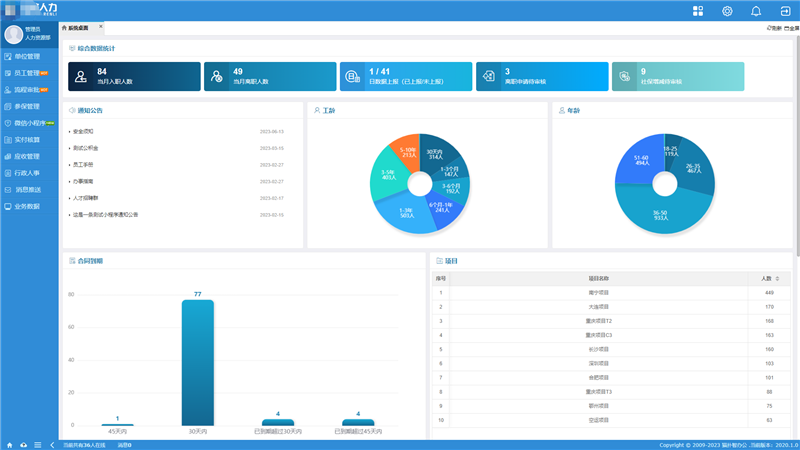 蓝擎人力目前面临一个项目多人员多难管理的状态,通过智办灵活用工平台,员工可以在上面定位打卡进行考勤、统计项目数据,对于人力公司来说,可以很大程度上节约用工成本,增加竞争力,合理的资源配置。