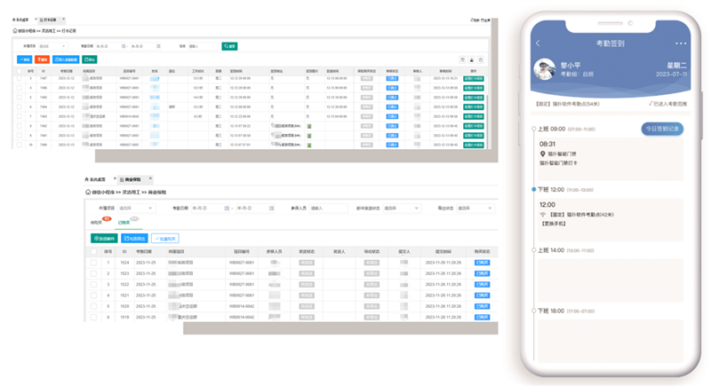 项目经理:审核灵活职业者的人员信息及上下班考勤打卡记录;
