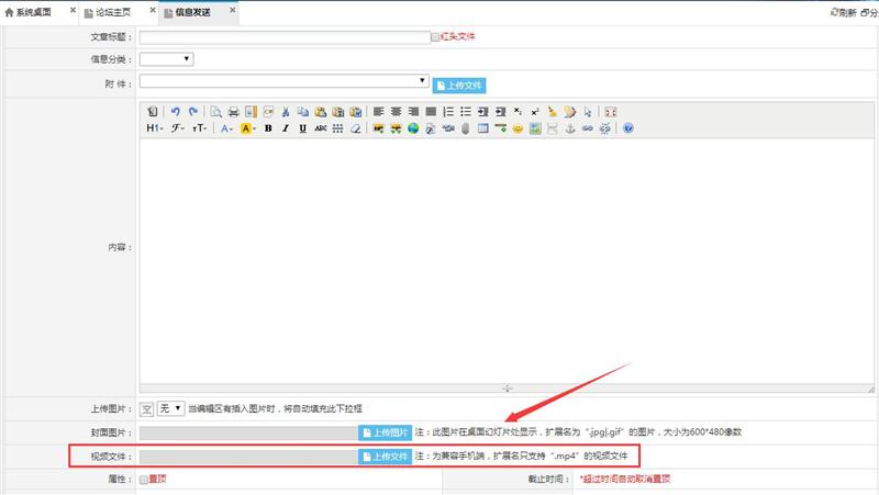 1、在的信息发布中增加视频发布功能,目前支持格式是MP4,支持大视频上传