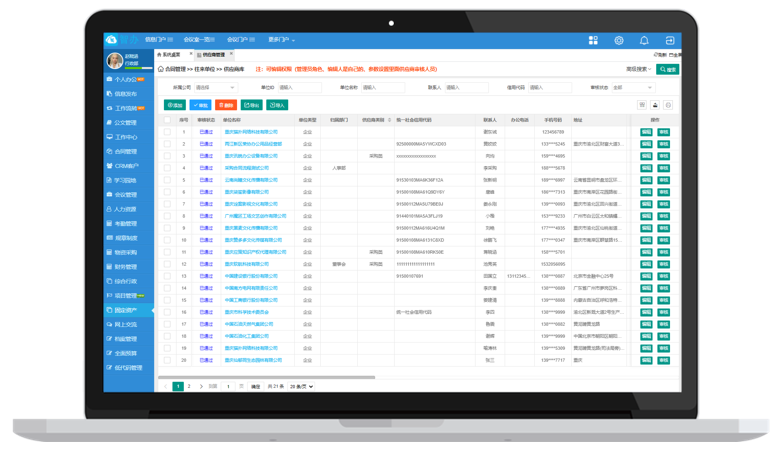 在系统录入每样资产的供应商信息,用于资产的维修、保养、查询等。