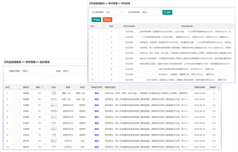 根据实际情况和需求,制定医院内部相应的医德医风考评标准,包括评分标准内容、加减分情况、评分标准类型等方面。