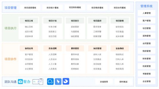 通过智办OA项目管理系统将项目管理集合同、任务、财务、文档等功能于一体,灵活适应各类项目管理需求,在信息高度共享的同时,让项目轻松管理,帮项目人员理清工作任务,使项目目标更清晰,同时也让项目真正按计划实施,防止遗漏,计划性强,更助企业优化项目过程,提高质量。