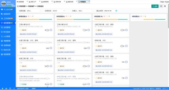 项目门户内支持看板和列表的展示方式,可以直观的查看每个项目的进展情况,每个成员的任务完成情况。